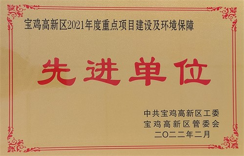 陜西紫光辰濟藥業(yè)有限公司榮獲“寶雞高新區(qū)2021年度重點項目建設及環(huán)境保障先進單位”
