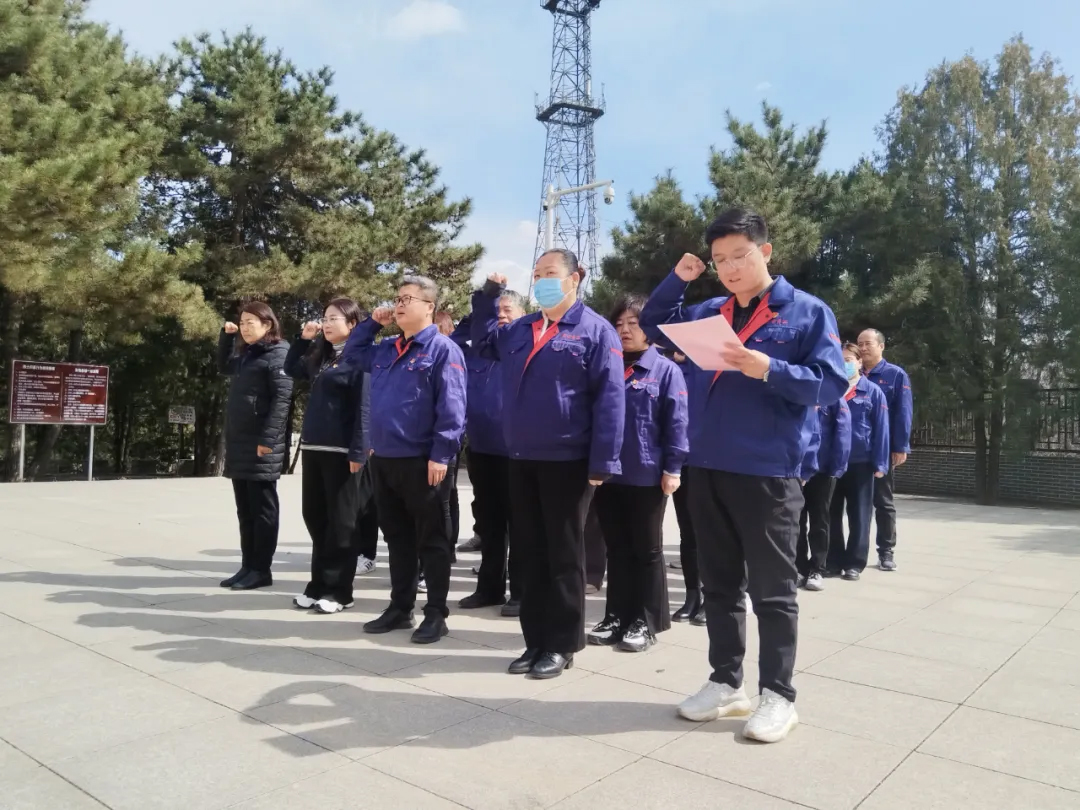 面對(duì)鮮紅的黨旗,黨支部書記領(lǐng)誓,全體黨員高舉右拳重溫入黨誓詞,誓言錚錚,響徹陵園,傳遞出傳承紅色基因、永葆政治本色的堅(jiān)定信念。